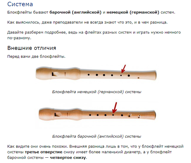 Как известно, блок-флейты бывают двух видов. В них отверстия просверлены чуть-чуть разного размера, так что нота фа берется двумя разными способами, и в зависимости от этого говорят, что у блок-флейты "немецкая аппликатура" или "английская аппликатура". Обе аппликатуры придуманы в начале 20-го века, соответственно, в Германии и Англии.